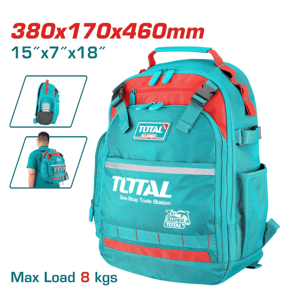 Balo TOTAL THBP02025 là lựa chọn hoàn hảo để đựng và bảo quản các loại dụng cụ cầm tay như tua vít, kìm, cờ lê, máy đo, phụ kiện sửa chữa… giúp người dùng làm việc chuyên nghiệp và hiệu quả hơn.