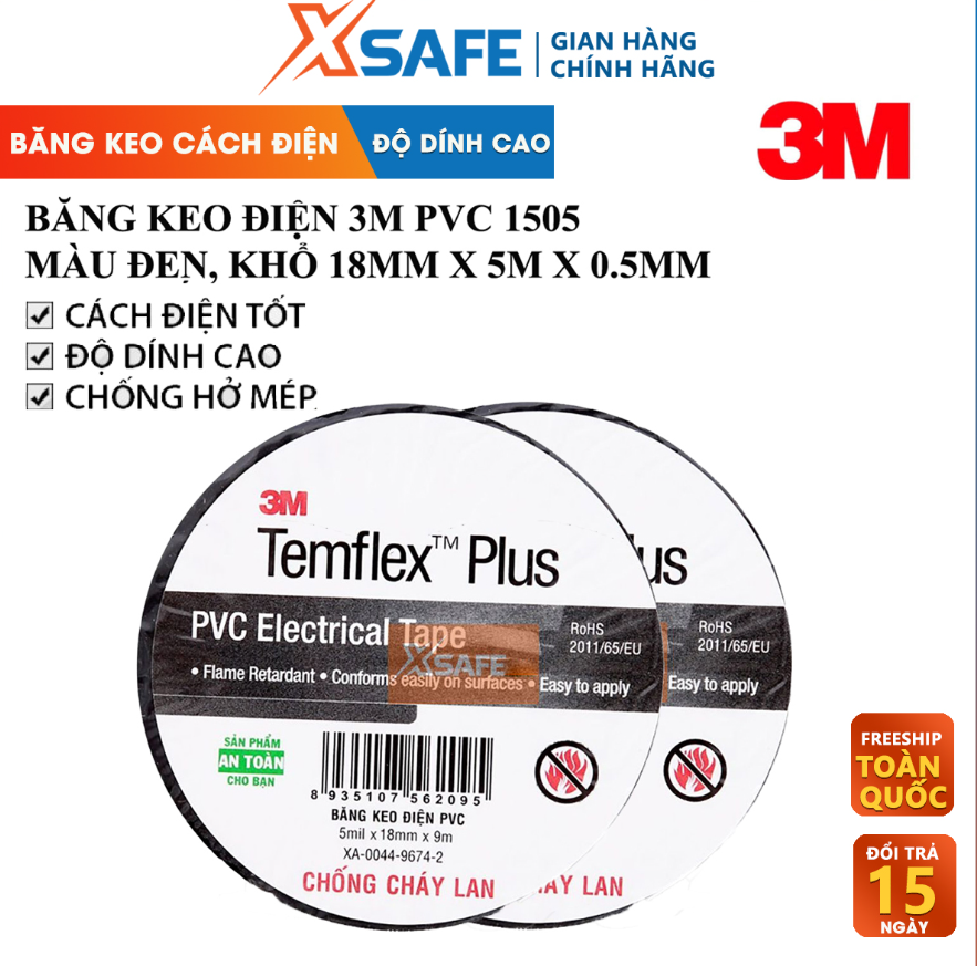 Băng Keo Điện 3M PVC 1505 Cách Điện 1Kv Chống Cháy