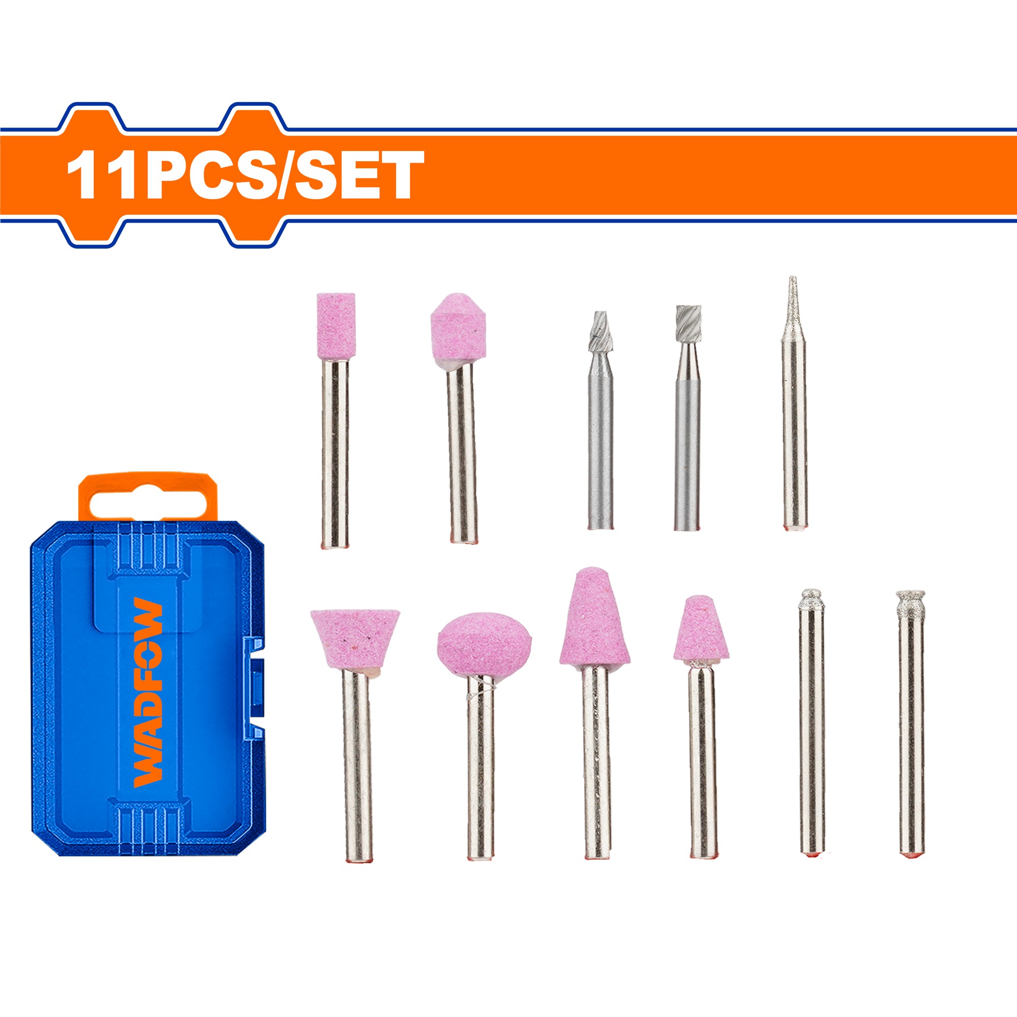 Bộ 11 Món Phụ Kiện Mài Mini WadFow WRR2011 là công cụ đa dạng và hiệu quả cho mọi tác vụ mài thủy tinh và đá, từ tạo hình cho đến hoàn thiện các sản phẩm từ các loại vật liệu này.