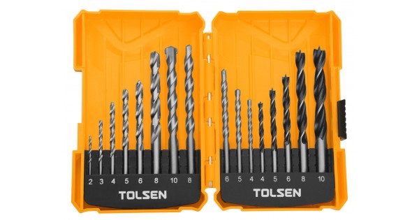 Bộ 16 mũi khoan gỗ - tường - sắt bao gồm 6pcs HSS TWIST drill bits với các size từ 2mm đến 8mm. Được làm từ thép cứng cao cấp, các mũi khoan này mang đến độ bền và độ sắc bén tuyệt vời, giúp bạn dễ dàng khoan lỗ chính xác và nhanh chóng trên các vật liệu như sắt, thép không gỉ và nhôm.