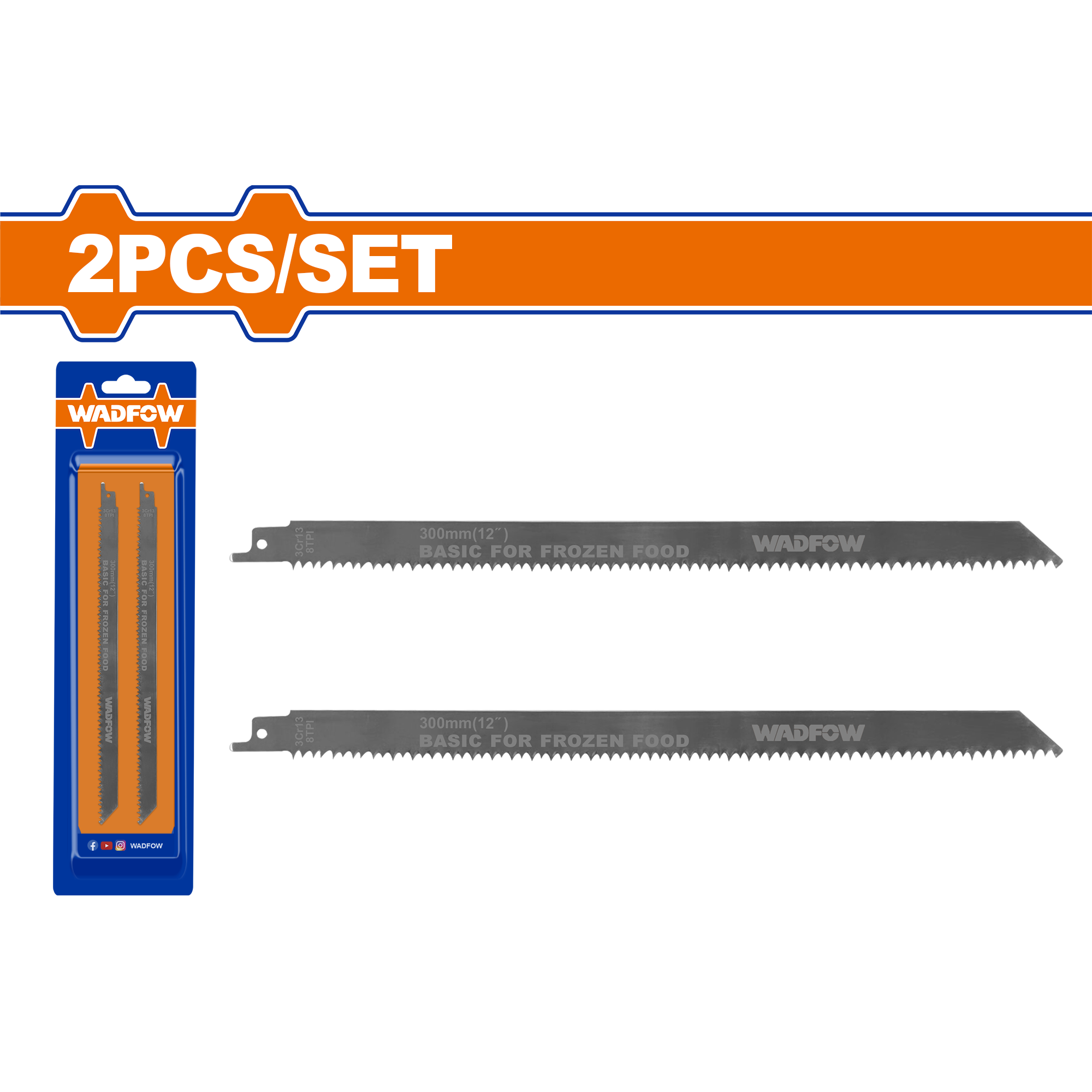 Bộ 2 lưỡi cưa kiếm (cắt thực phẩm đông lạnh) 300mm(12") WadFow WJT1208