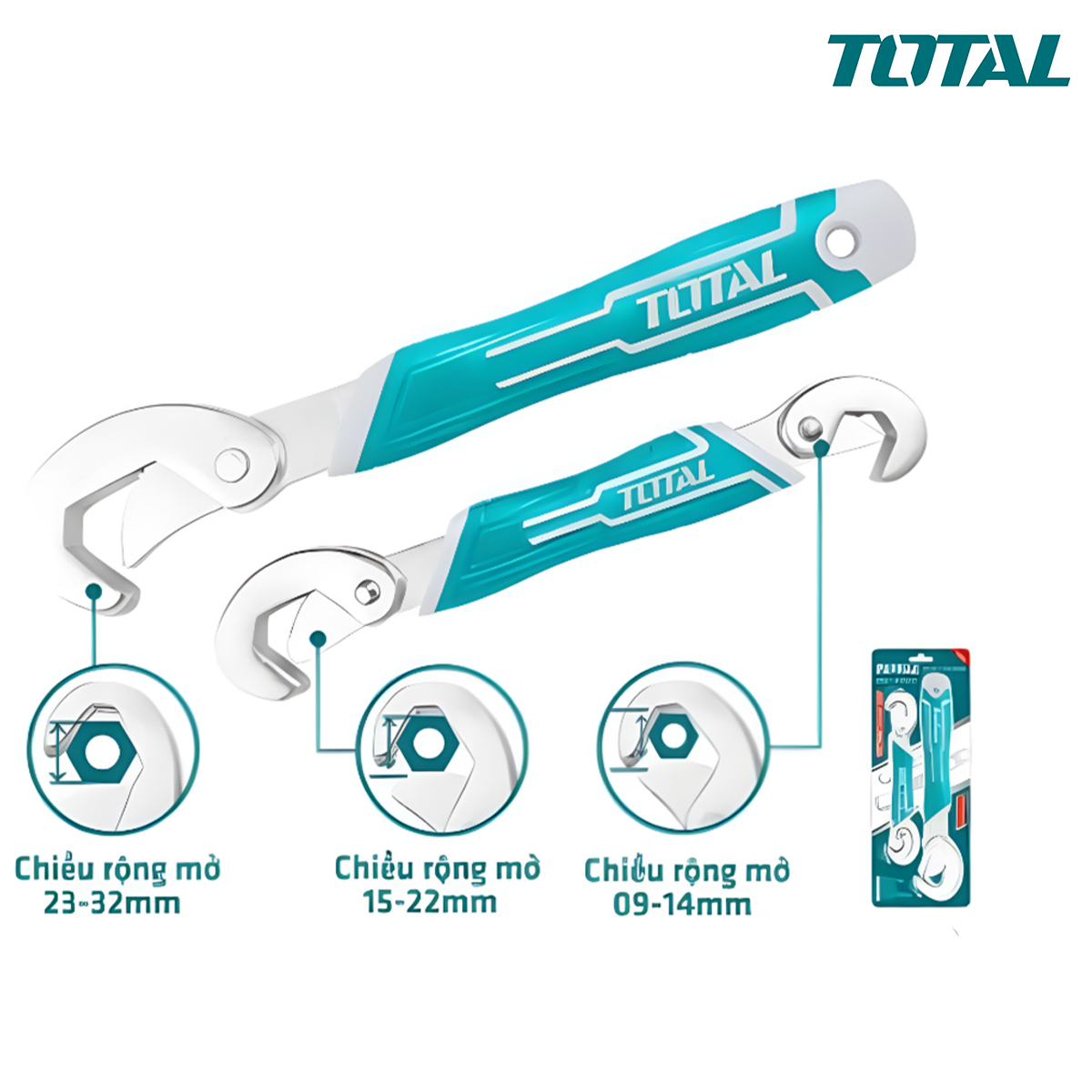 Thiết kế đa năng: Bộ mỏ lết đa năng TBWS09328 được trang bị với 2 mỏ lết khác nhau, cung cấp sự linh hoạt trong việc mở các kích cỡ ốc và bu lông. Mỏ lết hai đầu có khả năng mở từ 9-14mm và 15-22mm, trong khi mỏ lết một đầu có khả năng mở từ 23-32mm. Điều này giúp bạn tiết kiệm không gian và tiện lợi khi làm việc với nhiều kích cỡ khác nhau.
