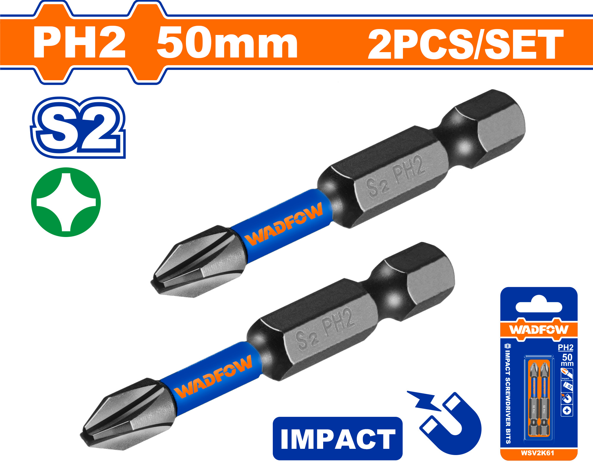 Bộ 2 mũi bắt vít đóng PH2 50mm WadFow WSV2K61 là một sản phẩm chất lượng với 2 mũi bắt vít đóng loại PH2 có độ dài 50mm. Sản phẩm này là lựa chọn lý tưởng cho các công việc bắt vít và lắp ráp trên các loại vật liệu và thiết bị.