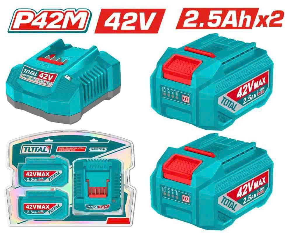 Bộ 2 pin Lithium 42V/ 2.5Ah và 1 sạc 42V Total TFBCPM25221