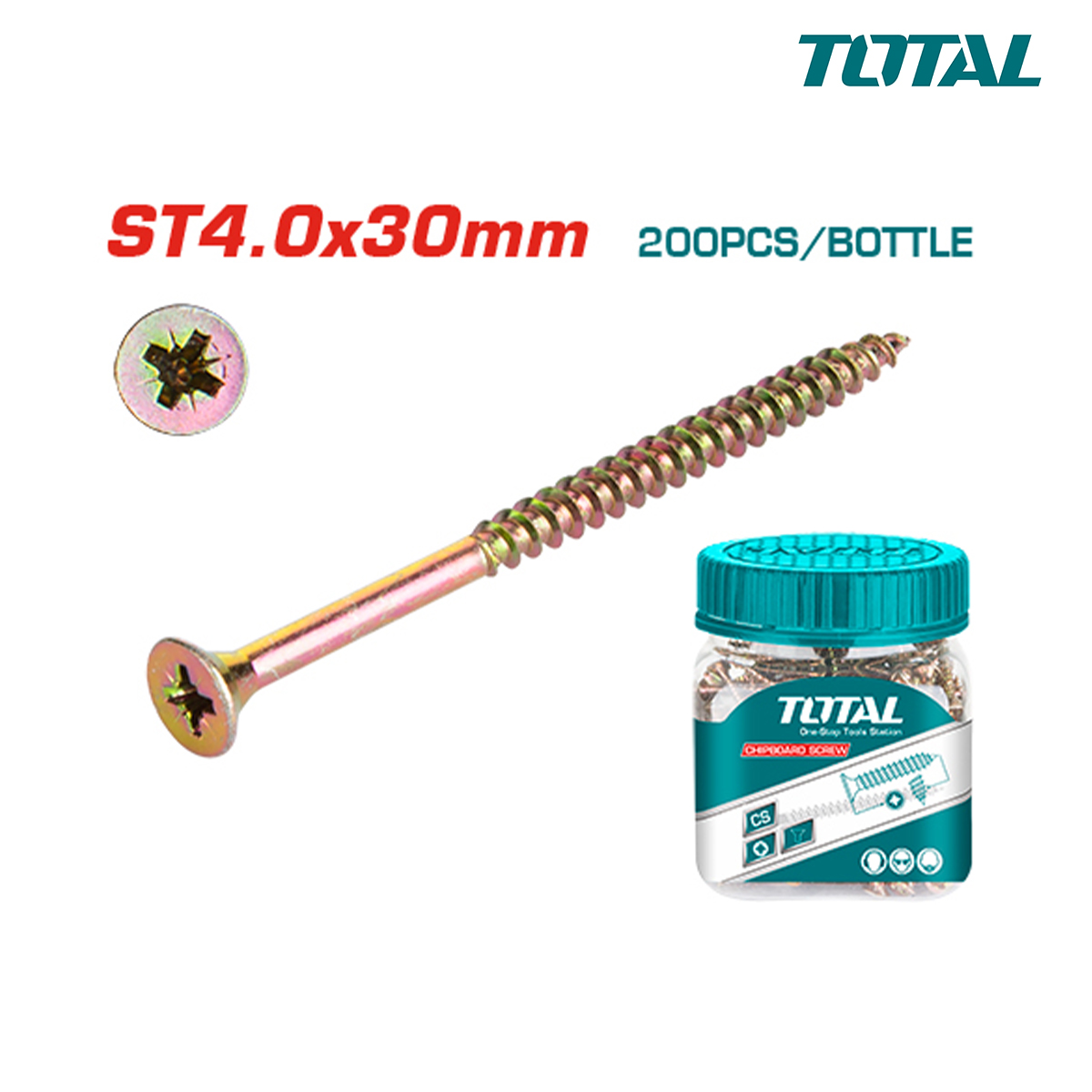 Bộ 200 vít bắt gỗ ST4.0x30mm TOTAL WJBS4003011 là một sản phẩm chất lượng cao, được thiết kế đặc biệt để đáp ứng nhu cầu về lắp đặt và bảo dưỡng trong các công việc xây dựng, gỗ công nghiệp và nhiều ứng dụng khác. Với đầu vít CSK và kích thước ST4.0x30mm, bộ vít này là lựa chọn lý tưởng cho việc bắt các tấm gỗ và các vật liệu khác có độ dày tương đối nhỏ.