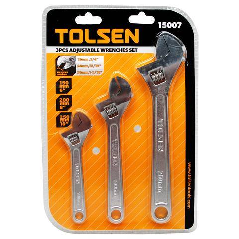 Bộ mỏ lết cán trơn TOLSEN 15007 gồm 3 mỏ lết với kích thước khác nhau, bao gồm 6", 8" và 10". Điều này cung cấp cho bạn sự linh hoạt trong việc lựa chọn công cụ phù hợp với nhu cầu và kích thước của công việc.