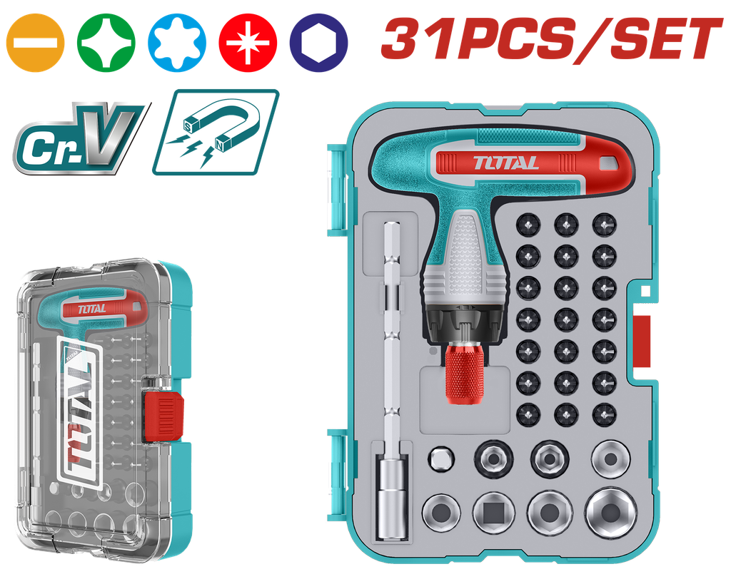 | Thành phần | 21 mũi vít CR-V 6,35x25MM: SL3, SL4, SL5, SL6, PH0, PH1, PH2, PH3, PZ1, PZ2, T15, T20, H4, H5, H6, SL6, PH2, PZ0, T10, T25, H3 |