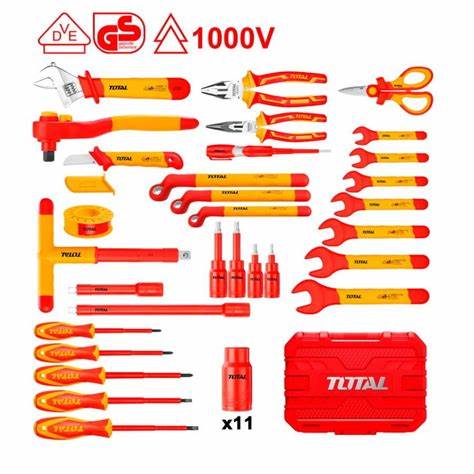 Bộ 41 công cụ cách điện Total THKITH4101 là một bộ công cụ đa năng được thiết kế đặc biệt để làm việc trong môi trường điện áp cao và bảo vệ người sử dụng khỏi nguy cơ giật điện. Dưới đây là một số đặc điểm nổi bật của bộ công cụ này: