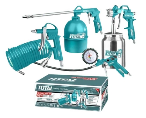 Bộ 5 công cụ dùng khí TOTAL TATK053-3 là một bộ sản phẩm chất lượng cao bao gồm 5 công cụ một súng phun sơn, một súng bơm, một súng thổi bụi, một ống dẫn khí và một bình chứa khí, giúp bạn thực hiện các công việc sơn, bơm, thổi và làm sạch một cách chuyên nghiệp và tiện lợi.