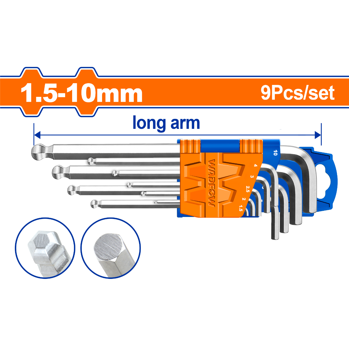 Bộ 9 chìa lục giác bi tròn 1.5-10mm WadFow WHK2291