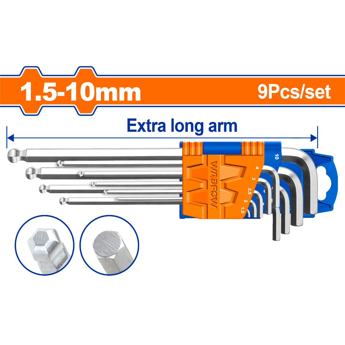 Bộ 9 chìa lục giác bi tròn dài 1.5-10mm WadFow WHK2292