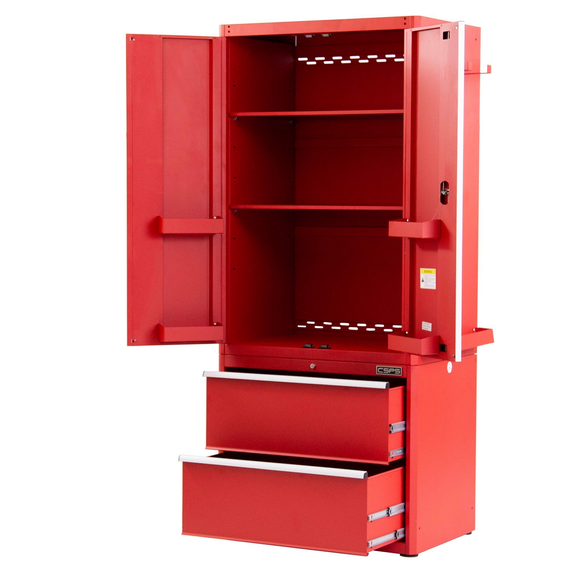 Khóa an toàn: Tất cả các tủ trong bộ 9 tủ CSPS 366cm đều được trang bị khóa an toàn, giúp bảo vệ các công cụ và linh kiện của bạn khỏi sự trộm cắp hoặc mất mát.