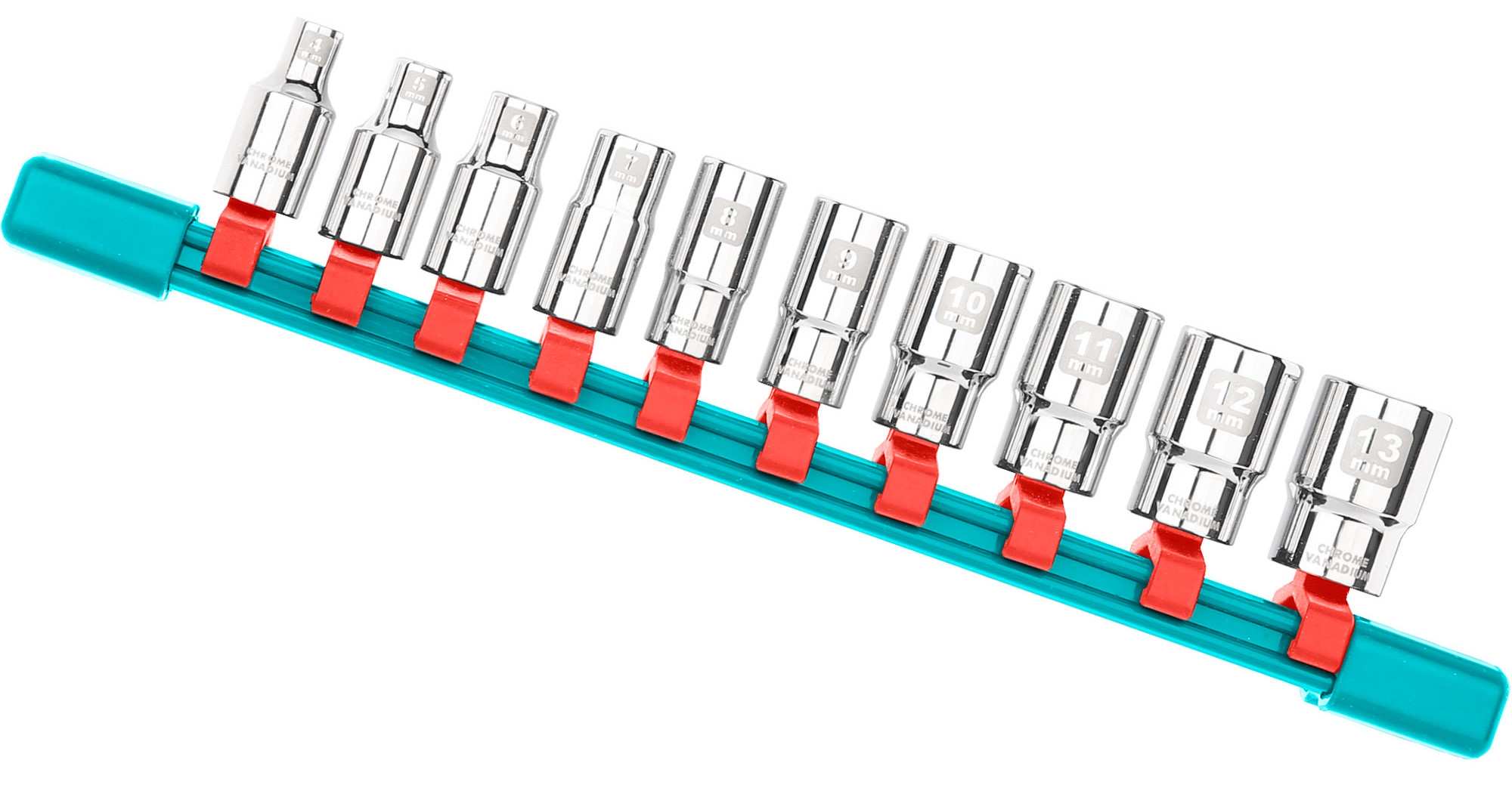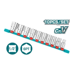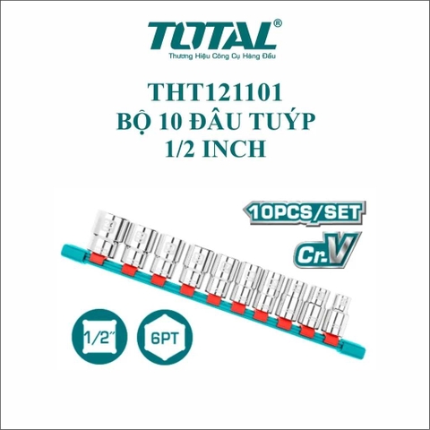 Bộ 10 đầu tuýp 1/2 inch Total THT121101 là một bộ công cụ chất lượng cao và đa dụng, được thiết kế để sử dụng trong các ứng dụng công nghiệp và ô tô.