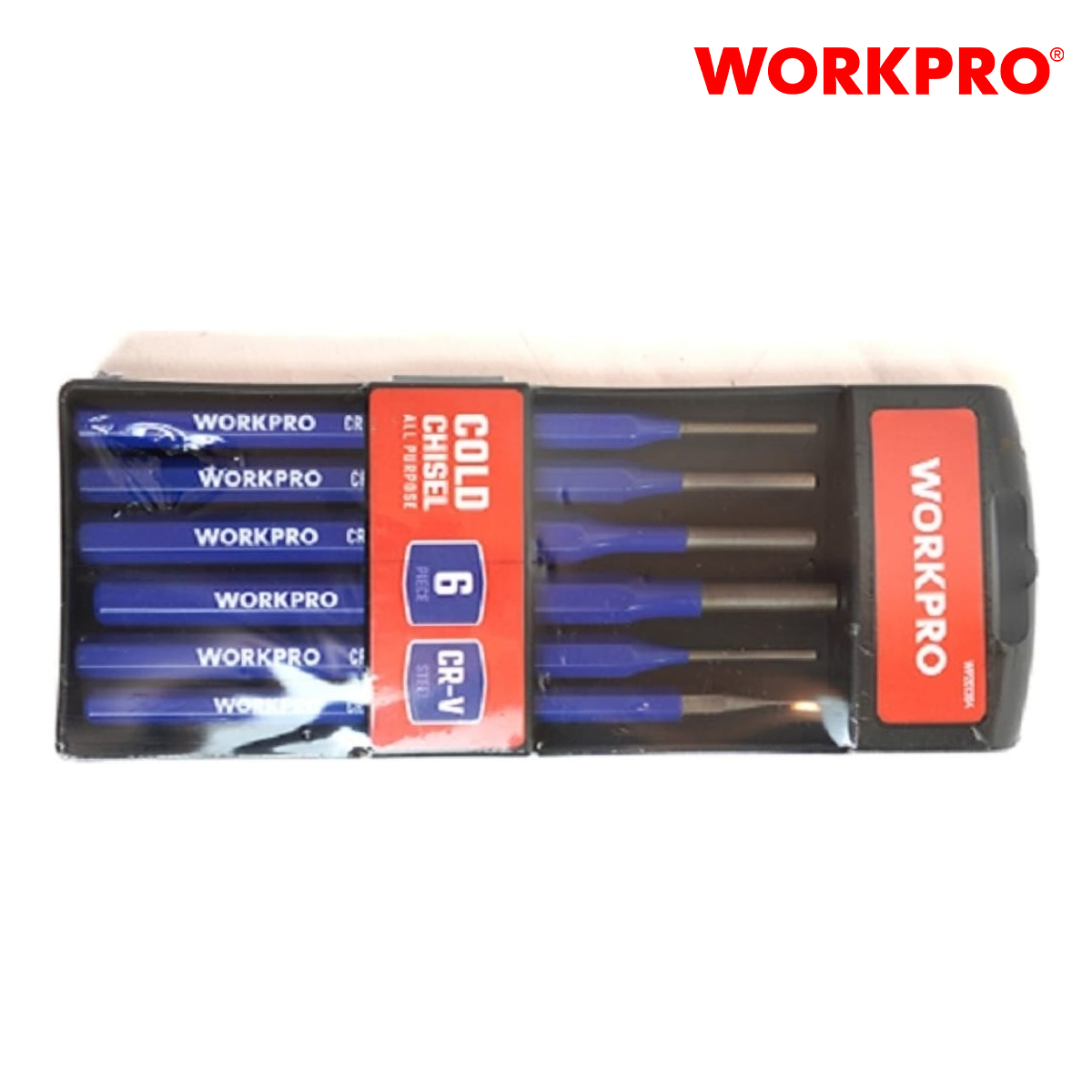 Bộ đột sắt 6 cái, kích thước 1.5x6x152, 3x8x152, 4x8x152, 5x5x152 ,6x10x152, 8x10x152 Workpro - WP201304 là một bộ công cụ đáng tin cậy và chất lượng từ thương hiệu Workpro. Với 6 mũi đục có kích thước khác nhau, sản phẩm này sẽ đáp ứng được hầu hết các nhu cầu đục lỗ trong công việc của bạn. Được sản xuất tại Trung Quốc, đây là một sản phẩm đáng tin cậy từ một thương hiệu được tin dùng.