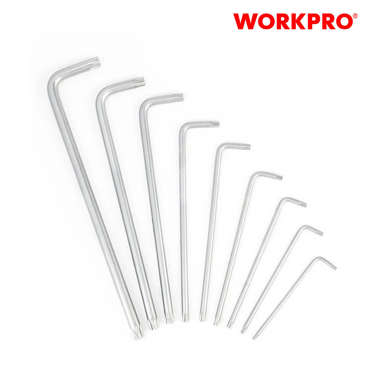 Bộ lục giác S2 đầu hình sao kiểu chữ L, loại dài, 9 cái (T10, T15, T20, T25, T27, T30, T40, T45, T50) - WORKPRO WP222036 là một công cụ không thể thiếu trong bộ sưu tập của những người làm việc trong lĩnh vực công nghiệp và sửa chữa. Với chất lượng và tính đa dụng, sản phẩm này sẽ giúp bạn thực hiện công việc một cách dễ dàng và chính xác.