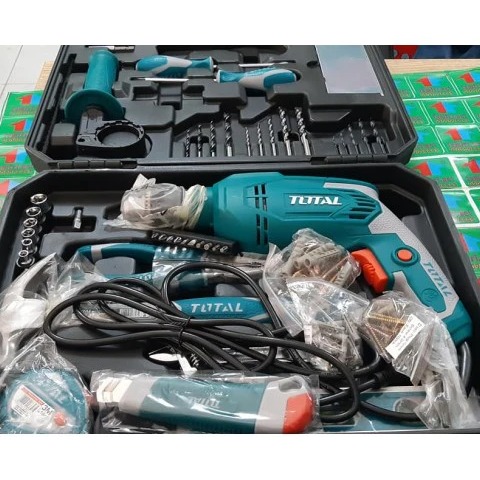 Bộ máy khoan búa 101 món 650W TOTAL THKTHP 1012E là một sản phẩm được thiết kế để giúp người dùng thực hiện các công việc khoan và đục trong các tác vụ xây dựng và sửa chữa.