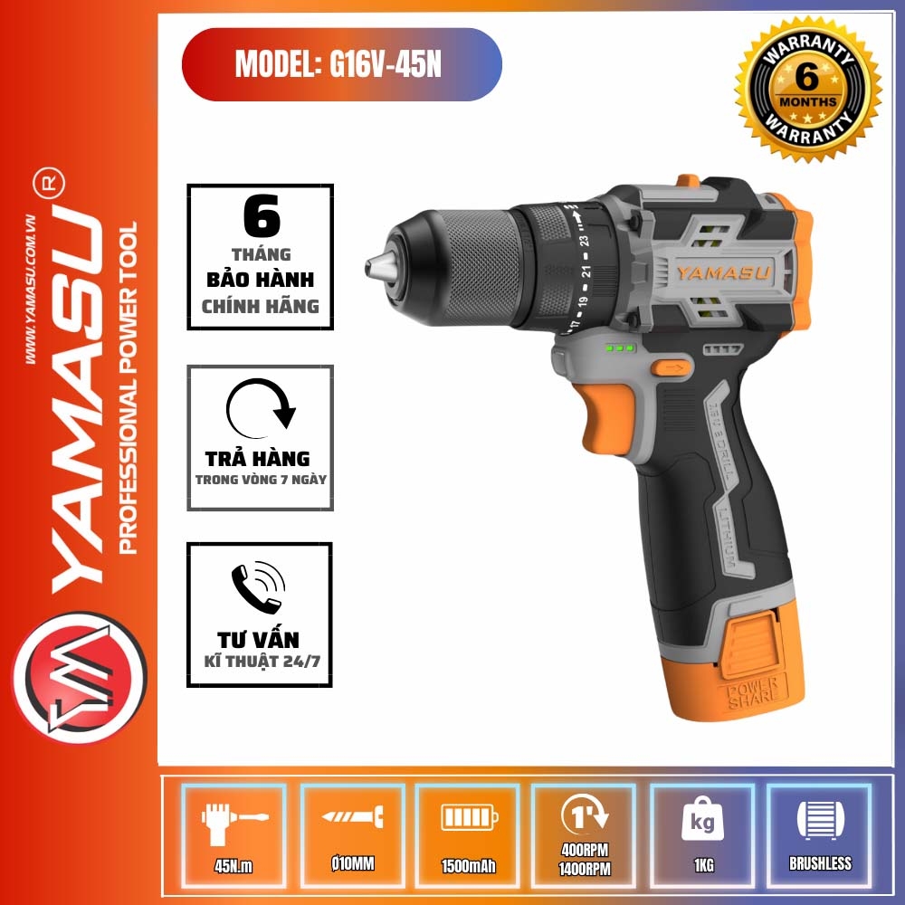 Bộ Máy Khoan Vít - Pin16V Yamasu G16V-45N