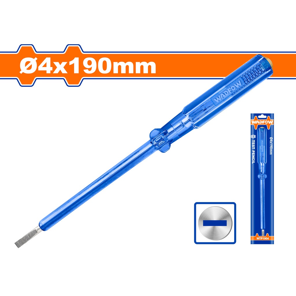 Bút thử điện 4x190mm (AC100-250V) WadFow WTP1904 là một công cụ hữu ích trong việc kiểm tra và đo đạc điện áp trong các hệ thống điện gia đình, công nghiệp, và các công trình xây dựng. Sản phẩm giúp bạn xác định nhanh chóng các nguồn điện có hiện diện, đảm bảo an toàn khi tiếp xúc với các thiết bị điện, hệ thống điện và linh kiện điện tử.