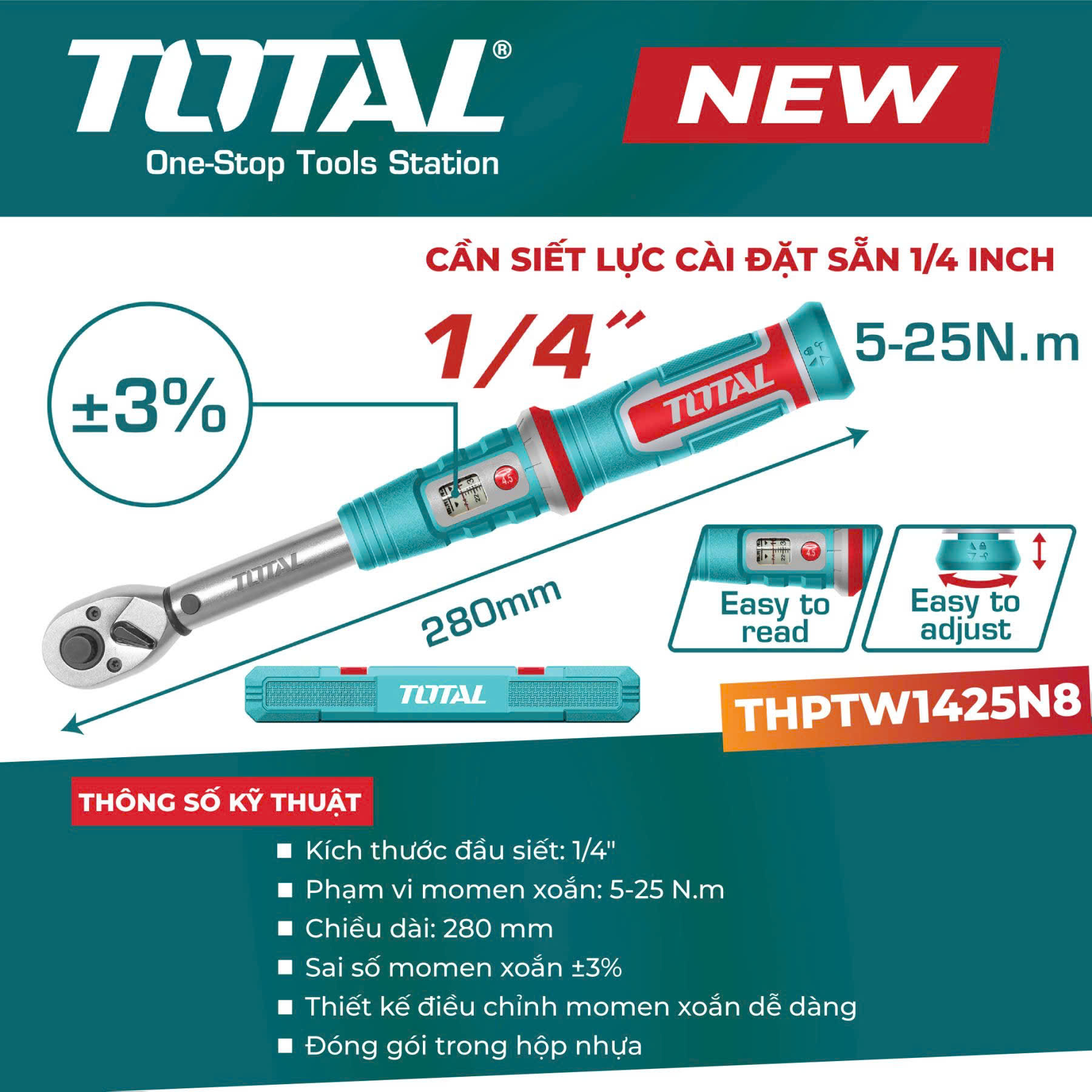 Cần siết lực cài đặt sẵn 1/4inch Total THPTW1425N8