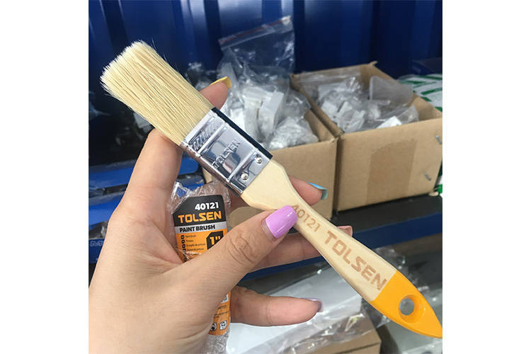 Cây cọ sơn TOLSEN 40121 được trang bị tay cầm bằng gỗ, mang lại sự thoải mái và kiểm soát tốt trong quá trình sơn. Tay cầm bằng gỗ không chỉ tạo điểm nhấn thẩm mỹ mà còn giúp bạn cầm nắm cây cọ một cách chắc chắn và ổn định. Điều này giúp bạn dễ dàng điều khiển và sử dụng cây cọ một cách chính xác. Tay cầm bằng gỗ cũng giúp giảm mệt mỏi khi làm việc trong thời gian dài, mang lại sự thoải mái cho người sử dụng.