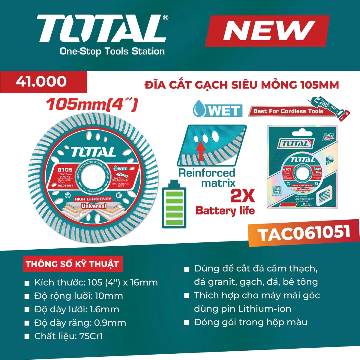 Đĩa cắt gạch siêu mỏng 105mm Total TAC061051