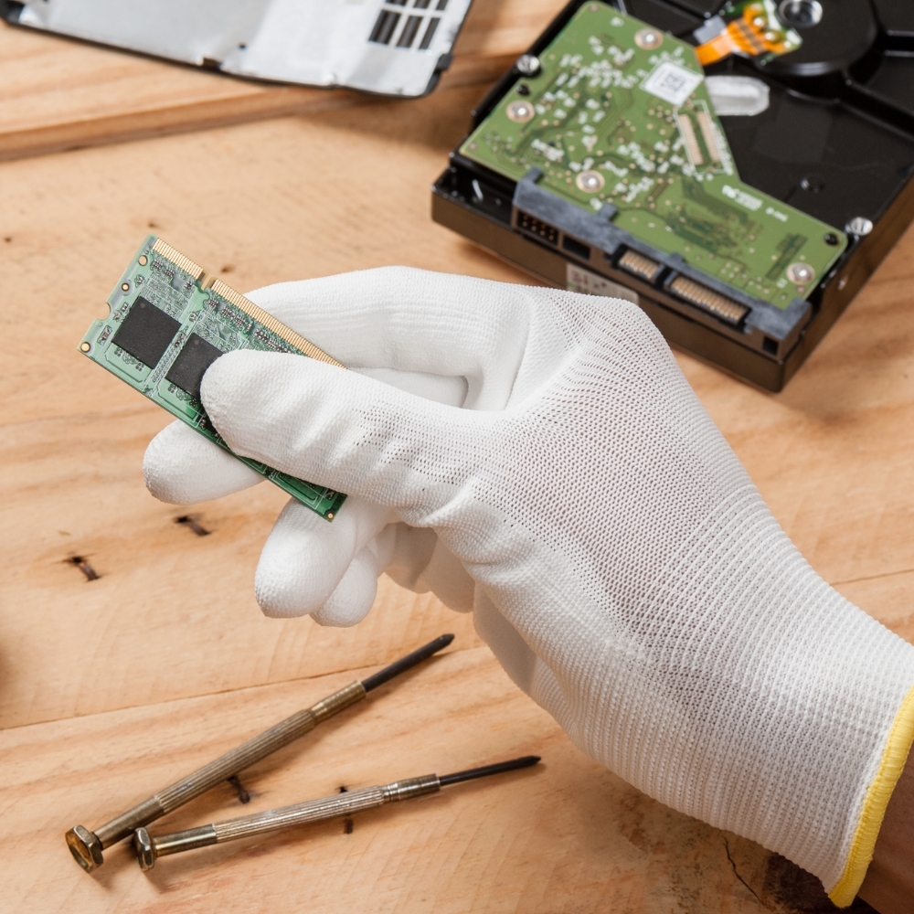 Găng tay chống tĩnh điện thường được làm từ sợi polyester pha carbon, giúp ngăn chặn sự tích tụ và phóng điện tĩnh. Sản phẩm này đặc biệt cần thiết trong ngành điện tử, lắp ráp linh kiện và sản xuất vi mạch.