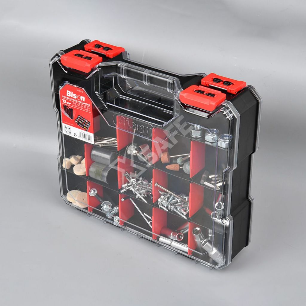 Hôp nhựa đựng linh kiện 2 mặt cao cấp Bison tối đa 34 ngăn, vách ngăn có thể tháo rời, dùng đựng linh kiện, đinh ốc vít BS011012
