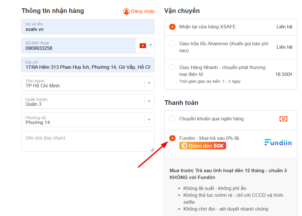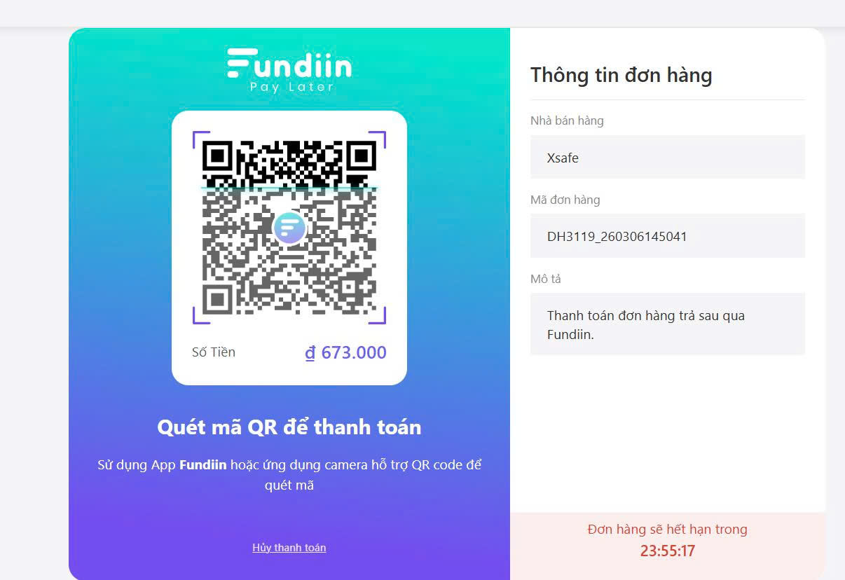 Hướng dẫn thanh toán qua Fundiin trên website Xsafe