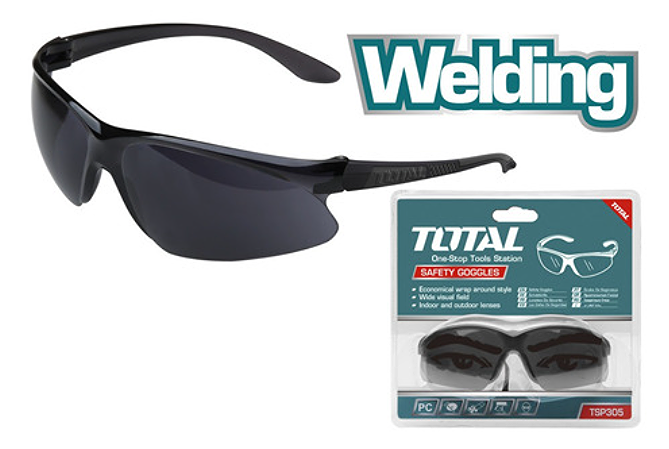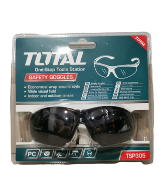 Kính bảo hộ đen TOTAL TSP305 là một sản phẩm được thiết kế để bảo vệ mắt và khuôn mặt khỏi các tác nhân gây hại trong quá trình làm việc như bụi, hóa chất, tia cực tím và các vật thể bay lơ lửng.