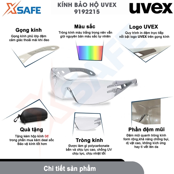 - Kính Uvex 9198257 đạt được chứng nhận 2 tiêu chuẩn châu Âu là EN 166 (bảo vệ mắt cá nhân) và EN 170 (bộ lọc UV).