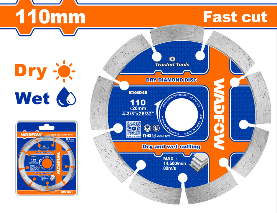 Lưỡi cắt gạch khô-ướt 110x20mm WadFow WDC1K01 mang đến hiệu suất hoàn hảo cho việc cắt gạch khô và ướt.