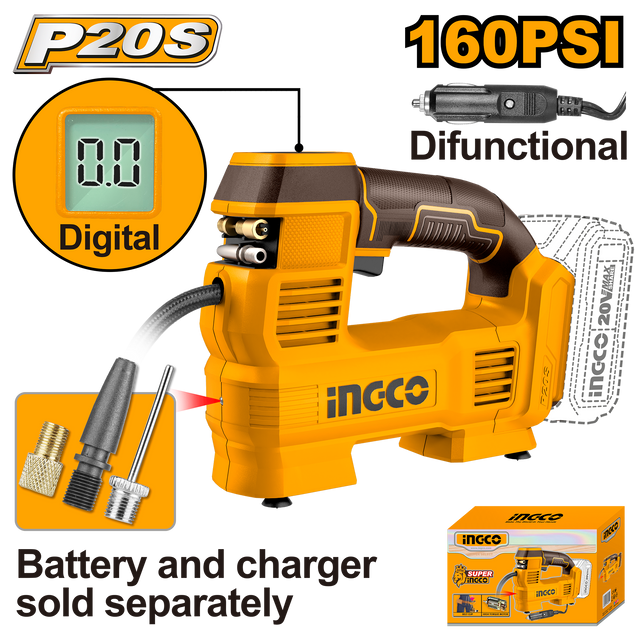 Máy Bơm Hơi Lốp Xe ô Tô Dùng Pin 20V-160PSI INGCO CACLI2012