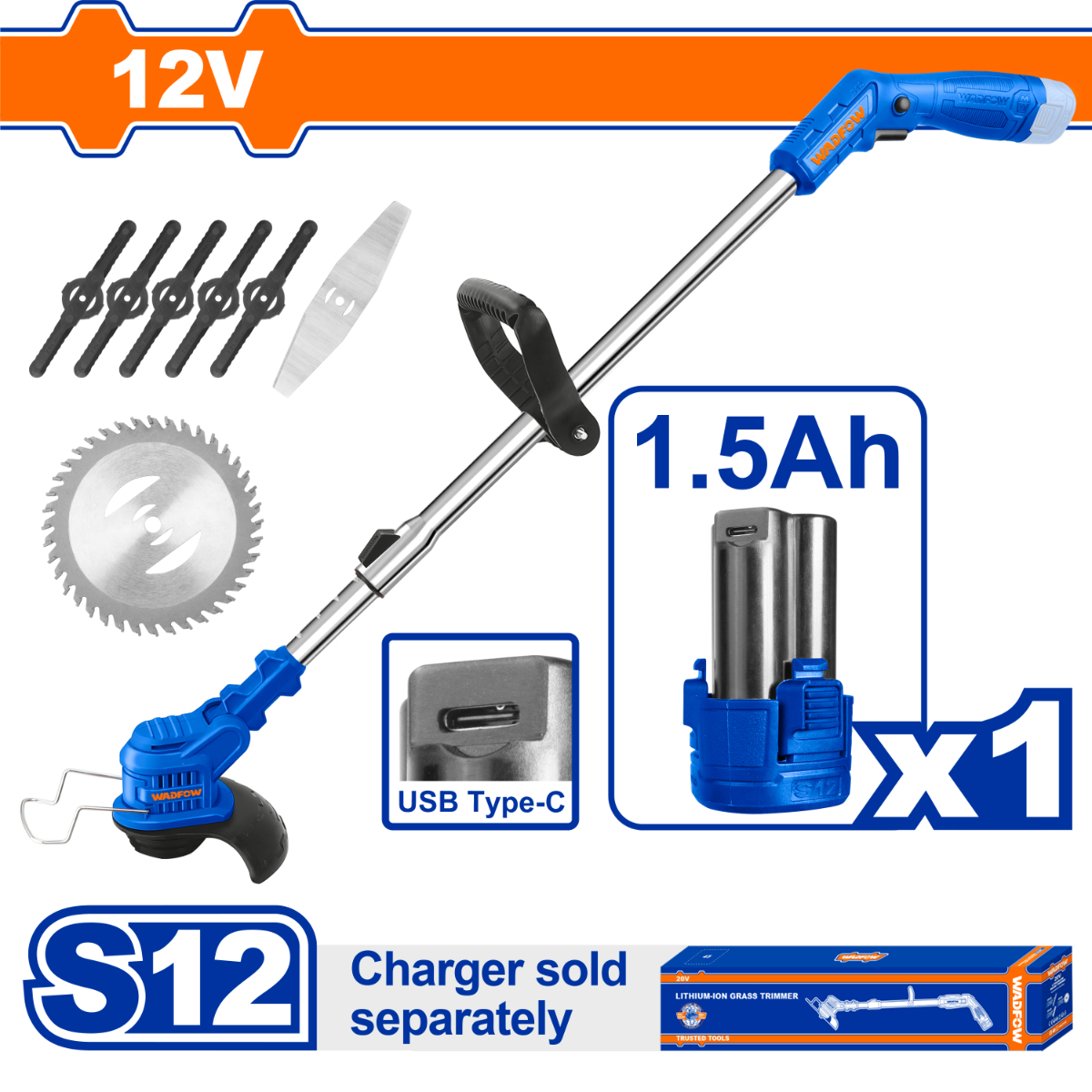 Máy cắt cỏ dùng pin Lithium-ion 12V (không kèm đầu sạc) WADFOW WGTS512