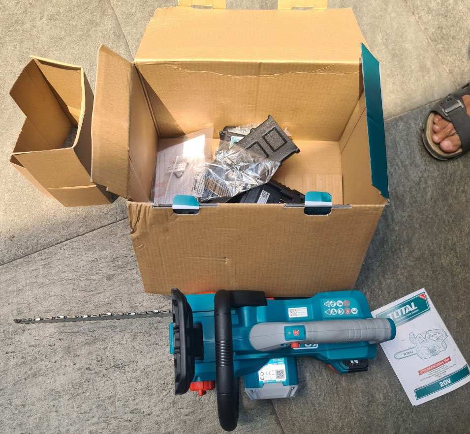 Máy cưa xích dùng pin 20V Total TGSLI201286 là một công cụ cắt gỗ và cây với thiết kế nhỏ gọn và linh hoạt