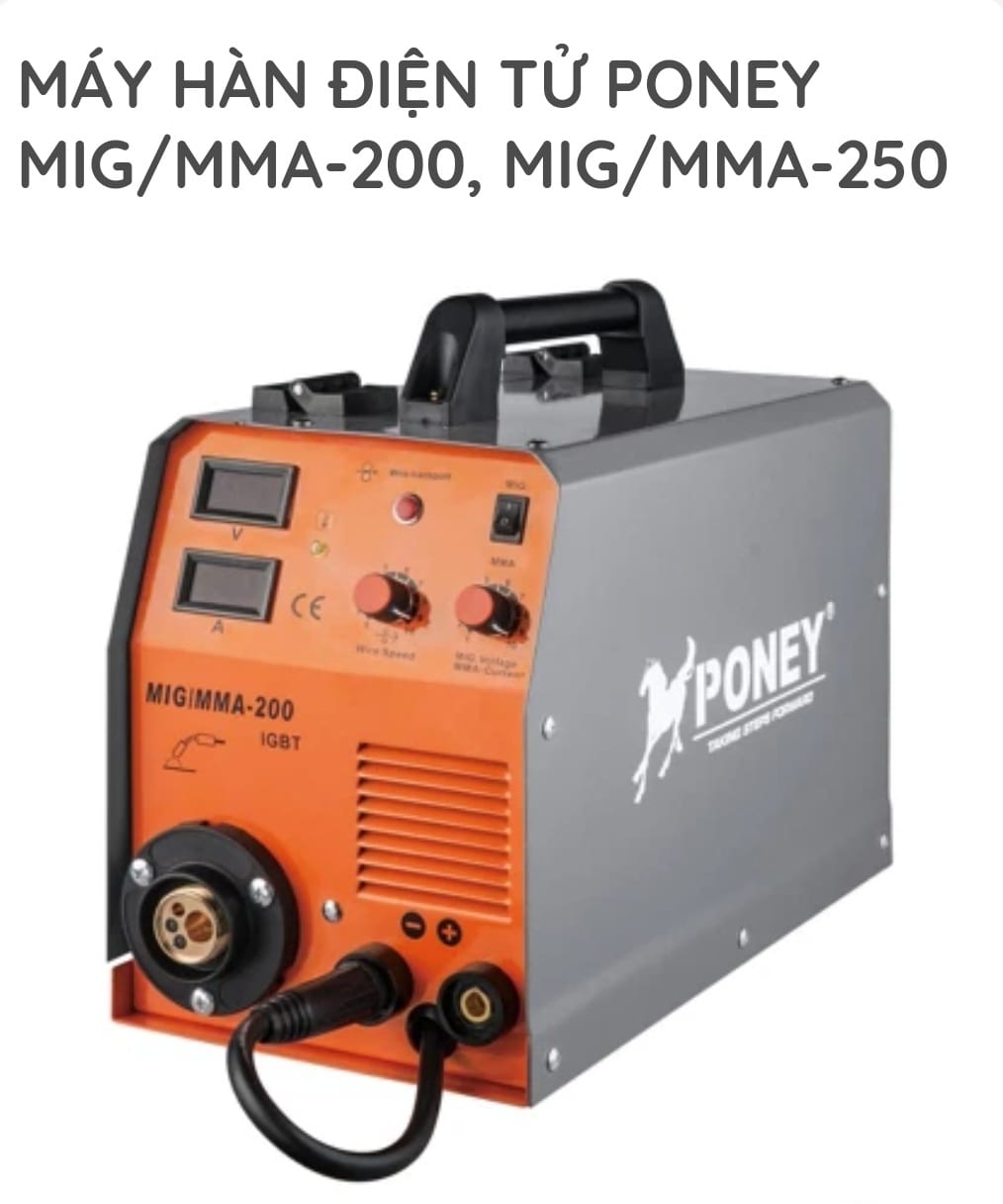 Máy hàn điện tử 250A PONEY MIG/MMA-250 là một công cụ mạnh mẽ và đáng tin cậy cho quá trình hàn MIG và MMA. Với điện thế vào 1 pha 220V và cường độ sử dụng lên đến 250A, máy hàn này cung cấp sức mạnh vượt trội để thực hiện các công việc hàn đòi hỏi sức mạnh cao và độ chính xác.