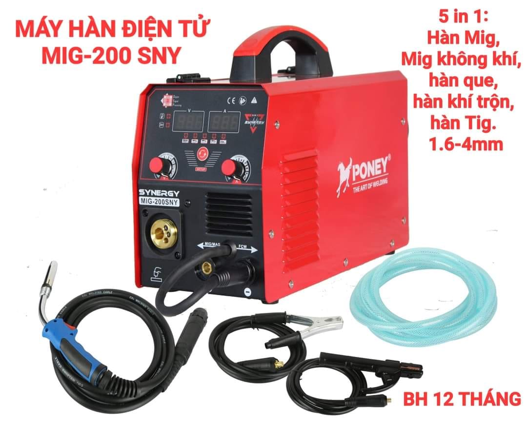 Máy hàn điện tử 7.5KVA PONEY MIG-200 SNY (5 in 1) là một công cụ hàn mạnh mẽ và đa chức năng, cung cấp sức mạnh cần thiết cho các công việc hàn Mig, Mig không khí, hàn que, hàn khí trộn và hàn Tig. Với khả năng linh hoạt và đa dạng này, sản phẩm này đáp ứng nhu cầu hàn của bạn một cách toàn diện.