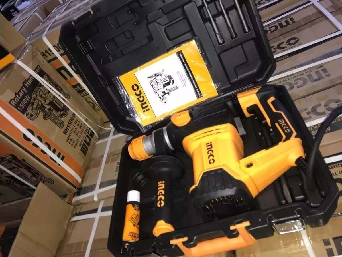 - Công suất mạnh mẽ: Với công suất động cơ lên đến 1500W, máy khoan đục INGCO RH150028 có thể xử lý các tác vụ khoan và đục cứng như bê tông, đá, gạch và thép.