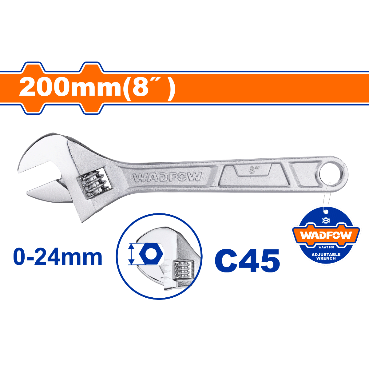 Kích thước kẹp có thể điều chỉnh: Mỏ lết WadFow WAW1108 được trang bị tính năng điều chỉnh kích thước kẹp từ 0 đến 24mm, giúp bạn dễ dàng thích ứng với các vật liệu và kích thước khác nhau.