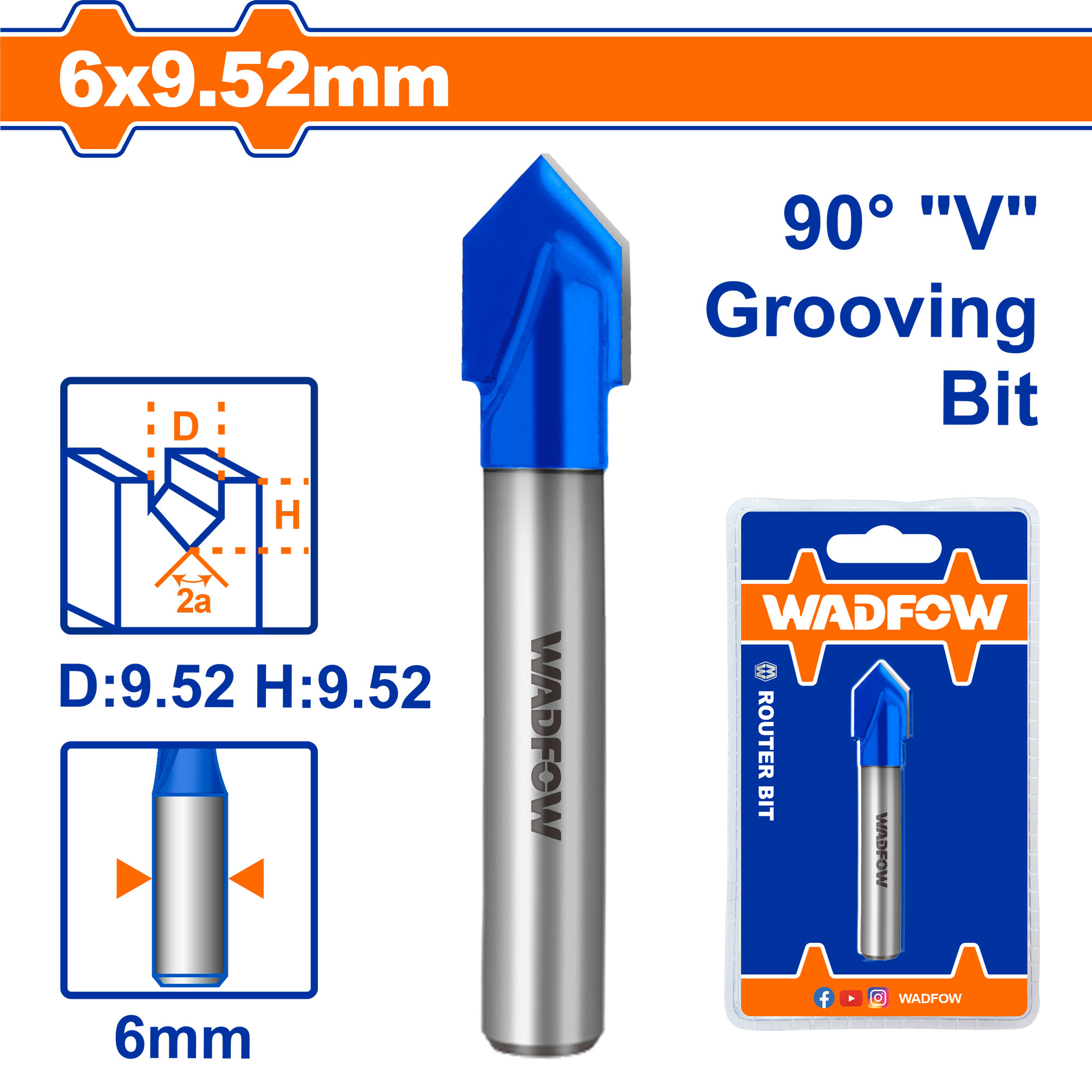 Mũi Phay Gỗ Cắt Rãnh V 6x9.5mm WadFow WRG2403 là một công cụ cắt rãnh hình V tinh vi, giúp bạn tạo ra các chi tiết đẹp mắt và chính xác trên bề mặt gỗ.