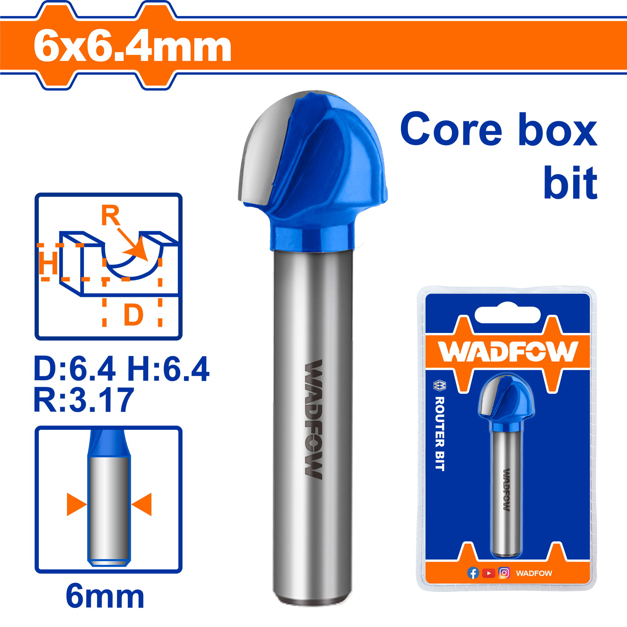 Mũi Phay Gỗ Đầu Tròn 6x6x6.4mm WadFow WRG8401 thích hợp cho việc tạo hình, tạo các đường cắt trên bề mặt gỗ và hoàn thiện các chi tiết chế tác gỗ nhỏ.