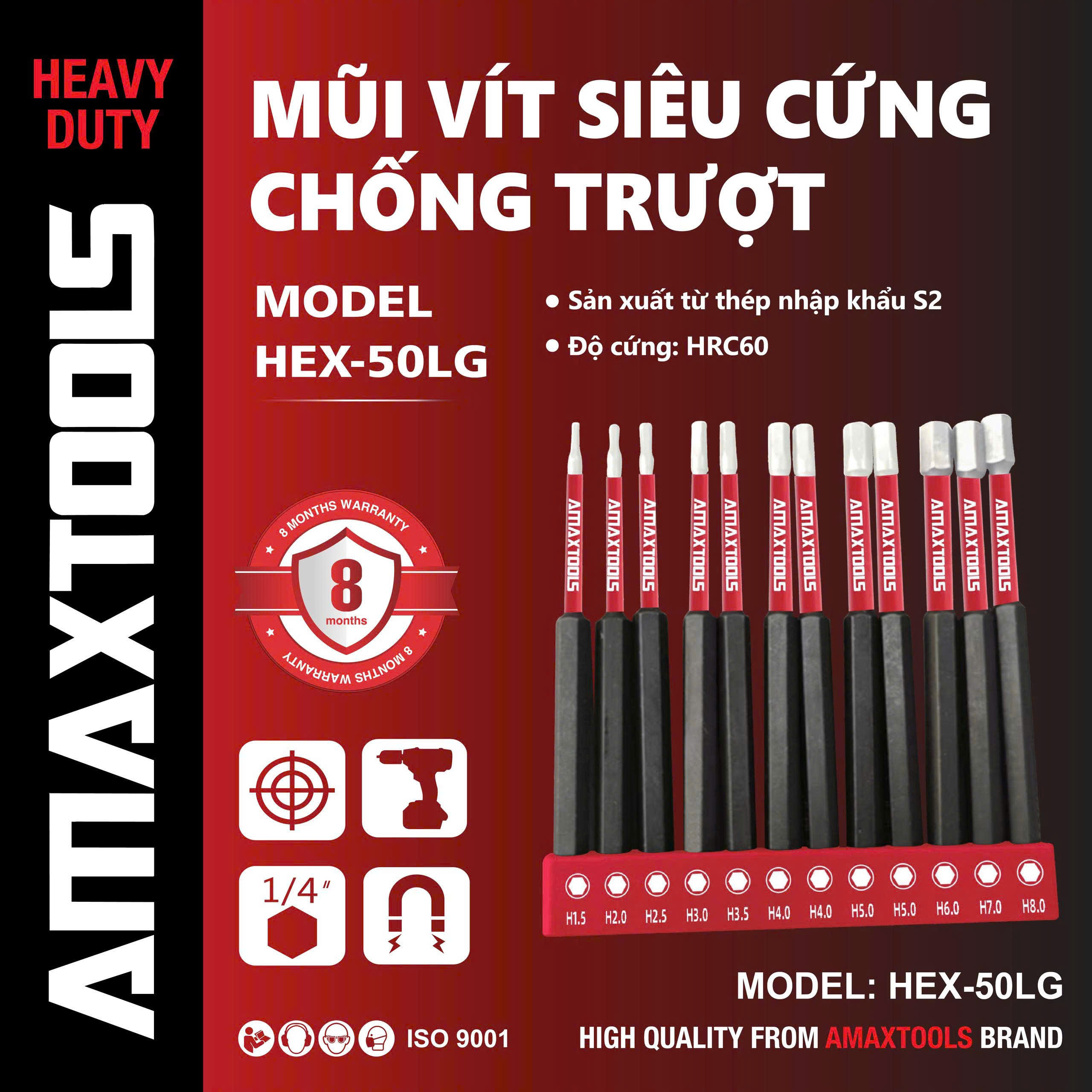 Mũi Vít Siêu Cứng Chống Trượt Amaxtools HEX-50HT