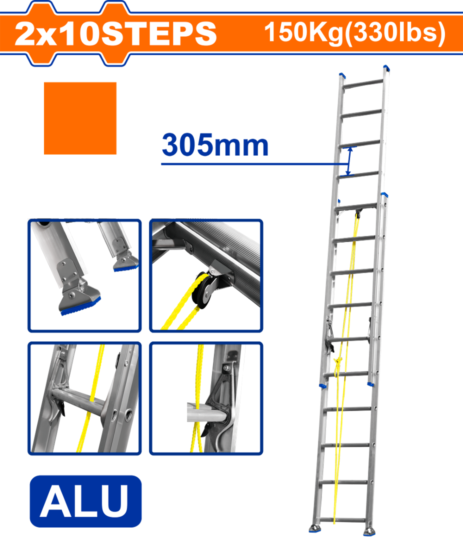Thang Nhôm Trượt Xếp Kéo Dài 2x10 Bậc WADFOW WLD8H20