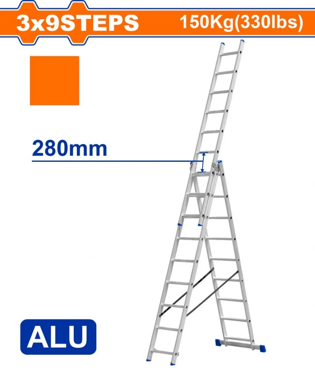 Thang Xếp Nhôm Kéo Dài 3 Đoạn 3x9 WADFOW WLD6H39