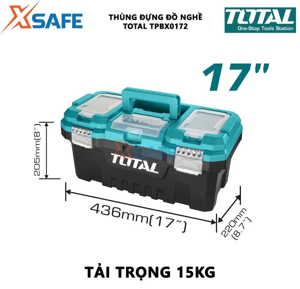 Thùng đựng đồ nghề 17 inch TOTAL TPBX0172 - Khóa kim loại là sản phẩm được khách hàng các nước trên thế giới nói chung và Việt Nam nói riêng tin dùng. Được sử dụng để bỏ gọn những đồ nghề, các loại máy móc thường xuyên được những người thợ sử dụng như khoan, máy mài, máy mơn, búa tay, kềm,…