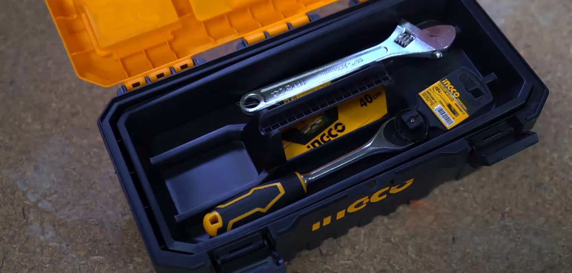 Thùng đựng đồ nghề 17inch INGCO PBX1702 - Khóa kim loại là một loại hộp đựng công cụ được làm bằng nhựa cao cấp, có kích thước 17 inch và được trang bị khóa kim loại để bảo vệ và giữ an toàn cho các dụng cụ bên trong.