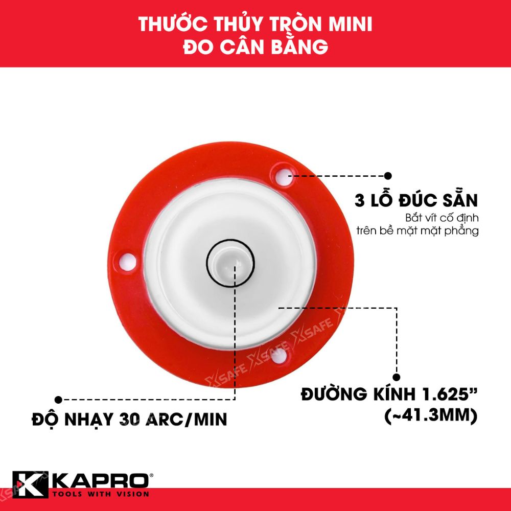 Thước có thiết kế nhỏ gọn dạng bullseye, Kapro 240 cho phép cân bằng theo mọi hướng. Các vạch màu đen rõ nét giúp người dùng dễ dàng quan sát và đọc kết quả nhanh chóng, ngay cả trong điều kiện làm việc liên tục.