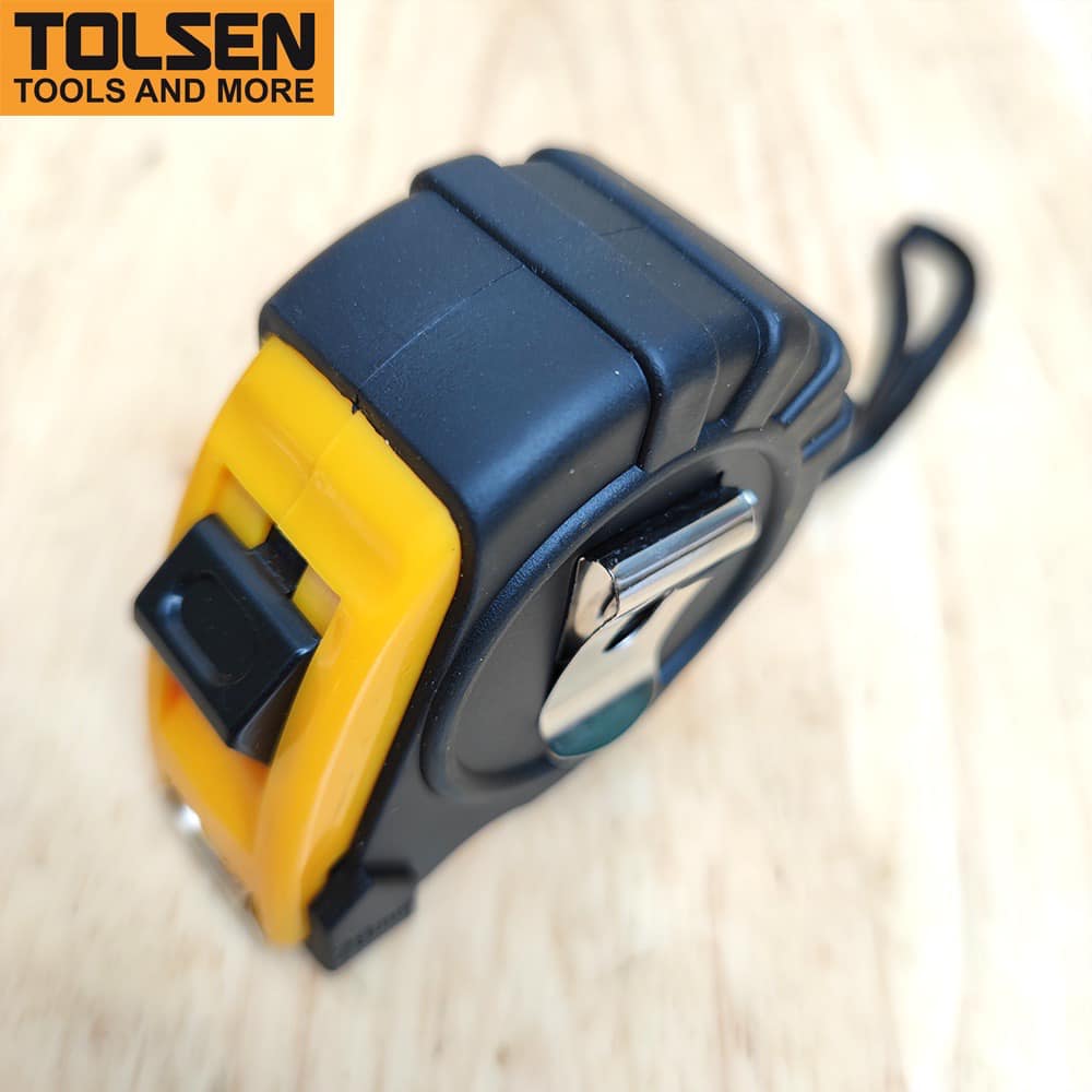 Thước cuộn TOLSEN 35984 được bọc trong vỏ ABS chống va đập mạnh, giúp bảo vệ thước khỏi các va chạm và tổn thương trong quá trình sử dụng. Tay cầm được làm bằng cao su mềm, mang lại sự thoải mái và tiện lợi khi cầm nắm và sử dụng thước cuộn.