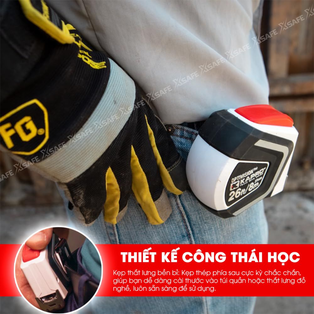 Thước cuộc Kapro 510 Optivision™ là một trong những thước cuộn đáng tin cậy và hữu dụng nhất trong ngành. Sản phẩm được trang bị thang đo kép, in hai mặt với 3 màu tương phản, giúp đọc số nhanh và chính xác cả theo phương ngang lẫn phương dọc. Lưỡi thước bản rộng, chịu lực cao, được phủ nylon chống mài mòn, cho khả năng vươn xa vượt trội.
