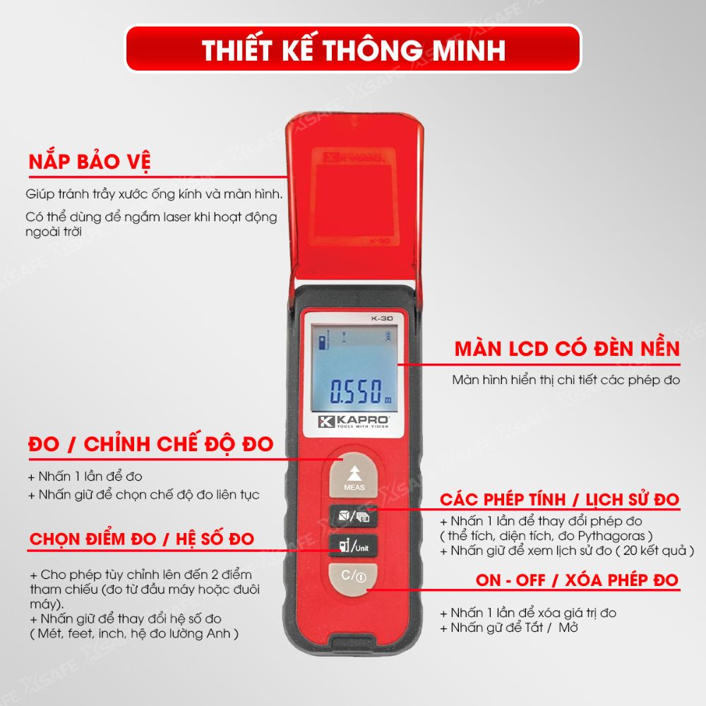 Kapro 363 là thiết bị đo laser tầm ngắn có độ chính xác cao, dễ sử dụng, dùng để đo khoảng cách, diện tích, chiều cao và thể tích.
