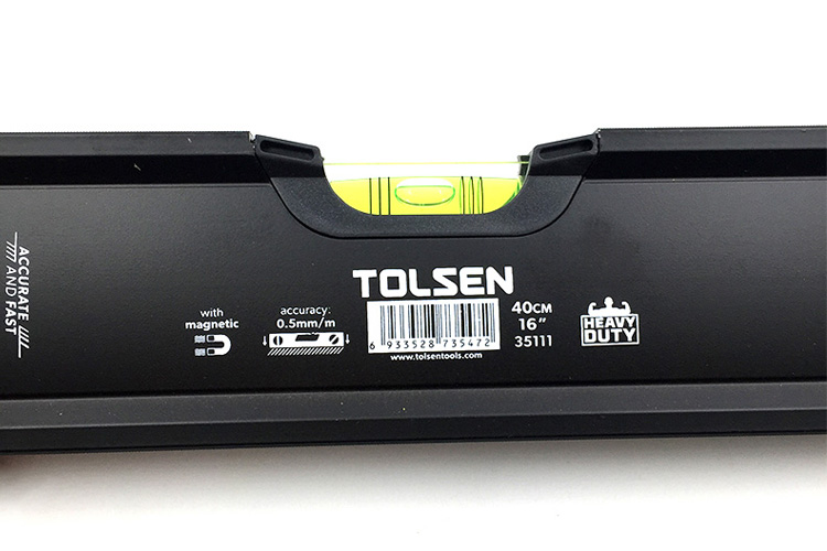 Thước thủy công nghiệp 40cm TOLSEN 35111 được trang bị khung nhôm nặng, mang lại độ bền và ổn định trong quá trình sử dụng. Khung nhôm chắc chắn giúp sản phẩm chịu được va đập và sử dụng lâu dài mà không bị biến dạng. Với khả năng chống oxi hóa và chống ăn mòn, khung nhôm của sản phẩm này luôn giữ được hình dạng và độ chính xác dù trong môi trường khắc nghiệt.